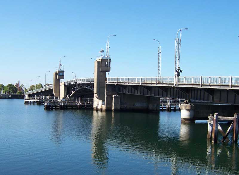 Servicing both road and shipping traffic, this twin bascule span bridge is unusual in Australia, and was in fact the first bascule bridge in Australia. "Bascule" refers to the "see-saw" action of the lifting mechanism that allows each 360 tonne leaf to tilt upwards to allow ships through. By 1940 the need for access to the developing industrial areas of Birkenhead and Osborne from Port Adelaide was obvious and the Birkenhead Bridge was opened in 1940. Birkenhead Bridge services both road and shipping traffic for South Australia's major port, Port Adelaide. It spans the upper reaches of the Port River and links the LeFevre Peninsula with the Adelaide metropolitan area.