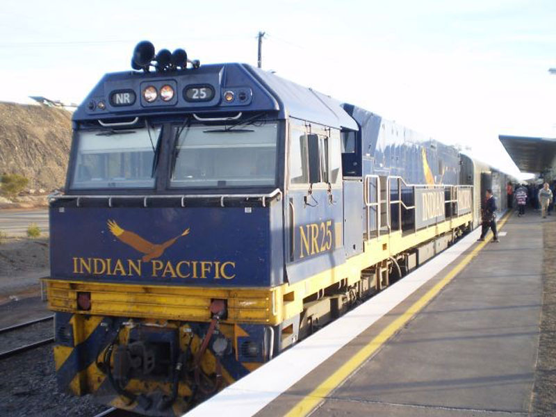 Perth is linked to Adelaide by the Trans Continental Railway across the Nullarbor Plain. The Indian Pacific is the passenger train which operates on this line. There are two services per week in each direction from August to April; at other times there is one service per week. There are two scheduled stops between Perth and Adelaide - Kalgoorlie and Cook.