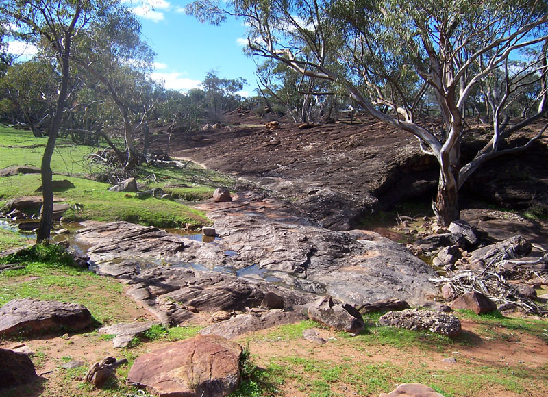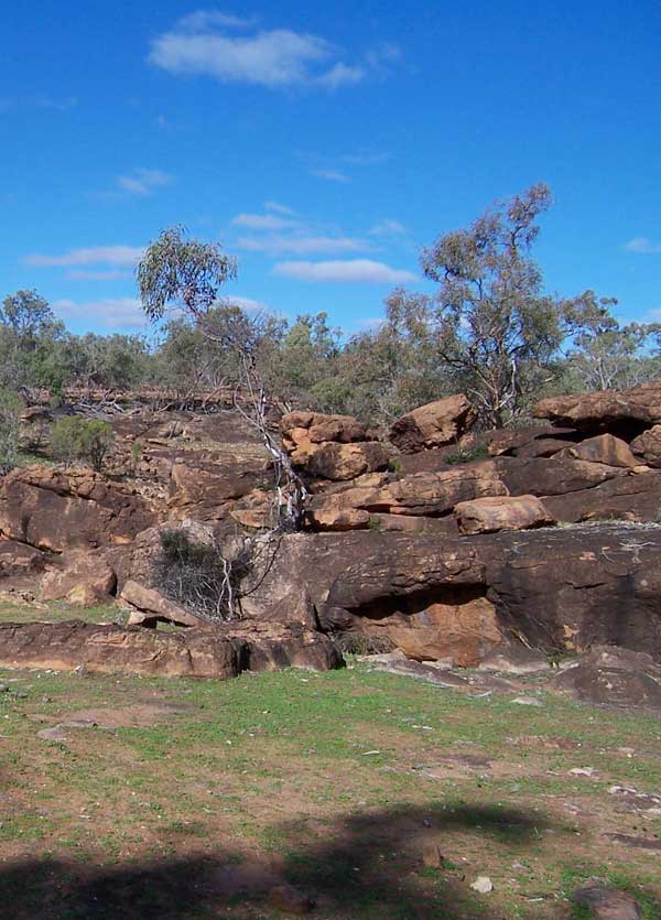 The Mt. Grenfell Historic Site is located 40 km west of Cobar on the Barrier Highway and then 32 km north on an unsealed road. All photographs on this page illustrate the rock art at Mt. Grenfell.
