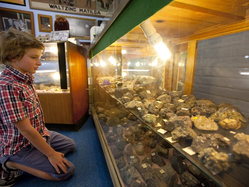 White's Mineral Art and Living Mining Museum, built by ex-miner Bushy White to replicate an underground mine, is crammed with memorabilia, old photos and models depicting work in the mines, along with Bushy's mineral artworks.