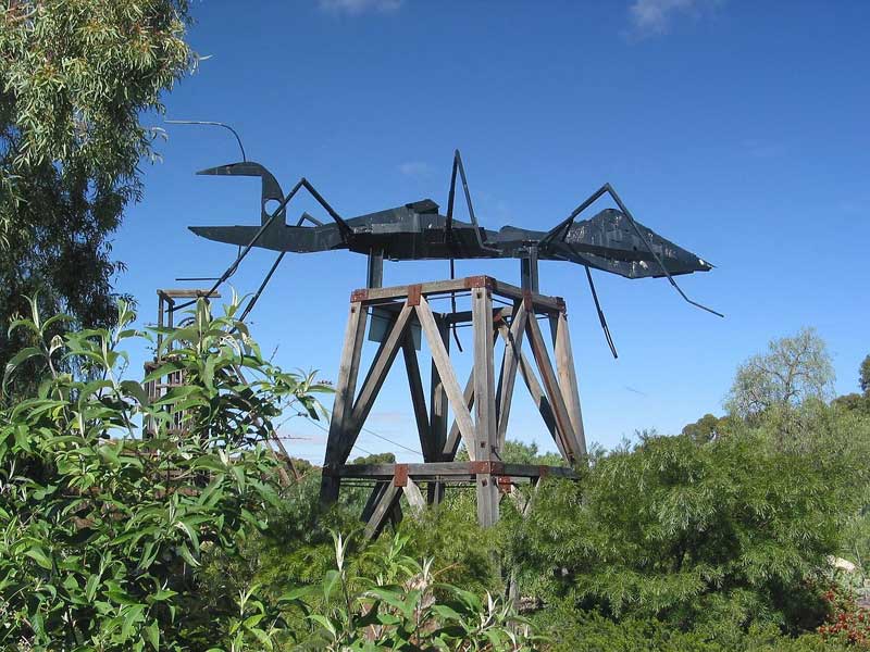 This reserve is located on the route of the Silverton Railway which closed in 1970. The wooden headframe was relocated from the Kintore Shaft at the Central Mine in 1984 to make way for open cut mining activities. The shaft was named after the Earl of Kintore, the first chairman of the Central Mine. The reserve also has large sculptures by Broken Hill artist, Pro Hart.