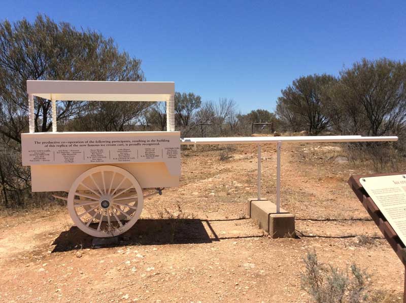 An ore truck marks the site of the Broken Hill picnic train attack on New Year's Day 1915. Depending on your point of view, Alma Cowie was the first Australian to be killed by the enemy on home soil in World War I, or the first Australian to fall to an act of terrorism. The 17-year old girl was one of 1,200 residents of Broken Hill who were riding the Manchester Unity Order of Oddfellows New Year's Day picnic train to Silverton that day. 48 shots at the train. Three people were killed and 10 were injured in the attack in which two Turks engaged in their own two-man war against Australia. Reporting the incident, the local newspaper made reference to "The Afghan Menace".It was the only battle of World War I fought on Australian soil and resulted in the de sath of the two ambushers. The incident occurred on 1 January 1915 when two Afghan immigrants, ice cream vendor, Gool Mohammed and camel driver Mulla Abdulla, ambushed a train carrying civilians en route to an annual picnic in nearby Silverton. Being Muslims, both men had sworn allegiance to the Sultan of Turkey and considered themselves at war with Australia. After the ambush, the men retreated to a nearby hill called White Rocks where they were killed by police and volunteer military forces after a three-hour gun battle. A replica ice cream cart now stands at the site of the shoot-out. The site of the attack is on a signposted side road off Silverton Road a few kilometres out of Broken Hill.