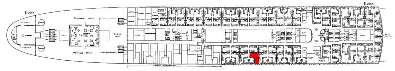 In much the same way as people are greeted and directed to their seat today by a stewardess as they board an aircraft, so a rather austere looking gentlemen in naval uniform greeted us at the top of the gangway and directed passengers to their cabins. My father gave him our tickets; he looked down at them, then at us before motioning towards a plan of the ship on a notice board alongside him. "We're on F Deck now," he announced, "Your cabins are on E Deck. "Go up the stairs and you'll find your cabins at the end of a passage on the right half way along." We stepped on board and into a large foyer outside the main dining room. The sweeping stairs that faced us, with their highly polished timber railings and glass chandeliers glistening overhead, were what I'd expect to see in the entrance of an opulent mansion but not an ocean liner.