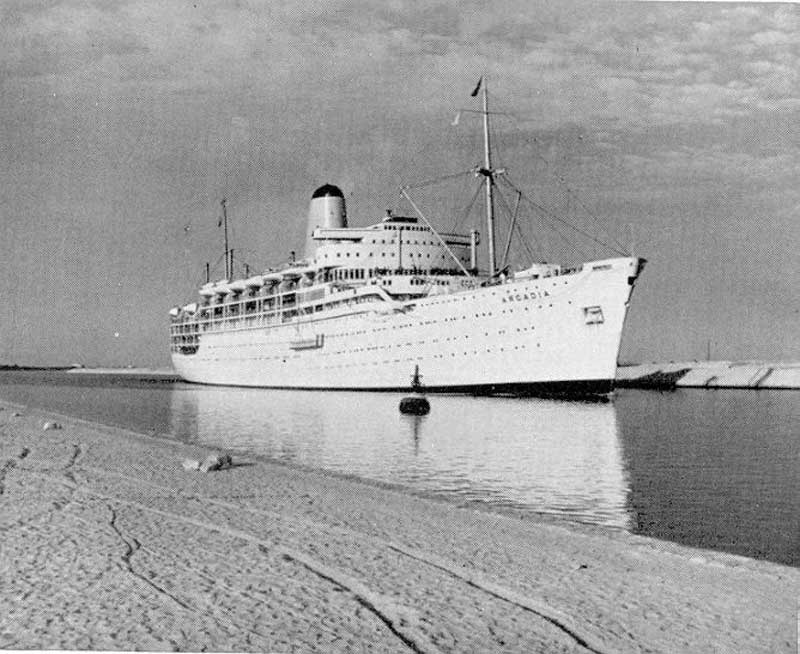 It was late afternoon when our papers had been checked and we were given the nod to board RMS Strathaird. I had never seen an ocean liner before. The only ports I'd visited were Hull and Whitby in Yorkshire, England, which was the birthplace of the noted British navigator, Captain James Cook. Both were incapable of berthing a ship the size of Strathaird and the biggest vessels I had ever seen up close in their harbours were tiny by comparison. I'd pictured this huge ship towering over me in my mind's eye for weeks prior to actually standing on the quay alongside her, but in reality she was far bigger, far grander than I ever thought possible. As we walked along the quay and headed towards the gangway, I was in total awe. I didn't realise it at the time, but I was going to have to wait a week until we disembarked in Greece on the first stopover on the journey before I could take a good look at her exterior in daylight.