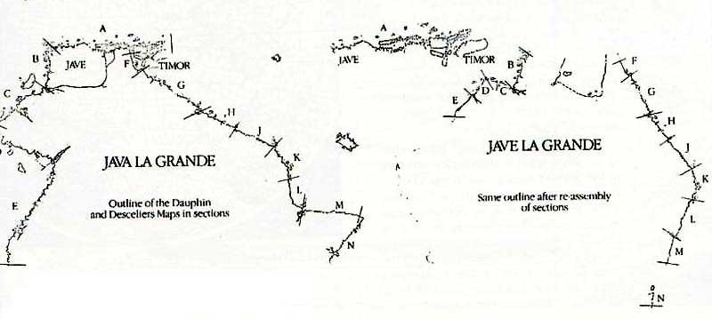 The eleven Dieppe maps differ in the amount of detail they contain, but the one thing they have in common is the size and shape of the coastline of Java le Grande along with a number of named coastal features, evidence that the new additions all came from the one source. The name Java Le Grande is French, which indicates that it was added by the cartographer and not the navigator, who, being Portuguese, would have called it India Meridional. Other names, like Coste Dangereuse and C. de Fremose, are a mixture of French and Portuguese, which clearly identifies the source of the new information as coming from a Portuguese navigator.