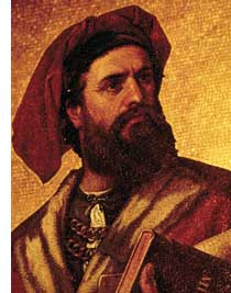 For centuries it had been assumed that the world was flat, but with the dawning of a new age of scientific study, it soon became obvious to the world's up and coming thinkers that this was not so. Why could you only see the peak of a mountain and not its base when viewing it from a distance? And when ships sailed out of sight, why did its hull disappear yet the masts remained visible? It stood to reason that this curvature would be constant, meaning that the earth was in fact round. A firm believer was Christopher Columbus (right), a Genoese seaman living in Spain, who promoted the theory that, as the world was round, one could reach Japan and China by sailing west as well as east, and that if his calculations were correct, they were actually closer if one travelled west.