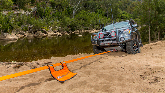 4. The tow vehicle should then accelerate away gently, taking up the slack whilst the bogged one assists by trying to drive out. Once the strap reaches maximum stretch the bogged vehicle should spring free. If not, try again using slightly more power and acceleration.