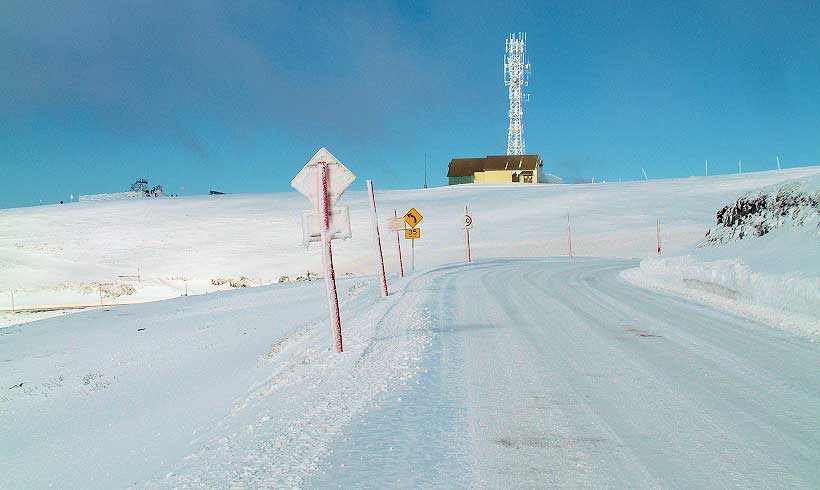 This bitumen route is also the shortcut from Victoria, through the heart of western NSW, up to Central Qld where it meets the Matilda Highway at Cunnamulla. Banjo Drive on the Alpine Way at Kasees in winter.