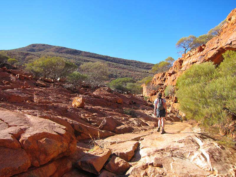 The West Macdonnell Ranges in the heart of Australia's red centre stretch for 400km from east-west as a series of parallel ranges. Within the ranges are magnificent gaps and gorges, dramatic scenery, great bush camping and walks.