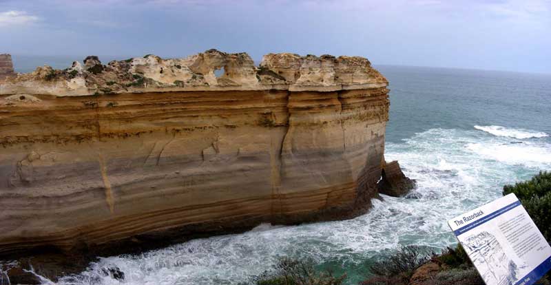The Razorback was once named as part of the Twelve Apostles when they were known as the Sow and Pigs, along with Island Arch, Castle Rock, Pudding Basin Rock. Mutton Bird island was the 'sow'.