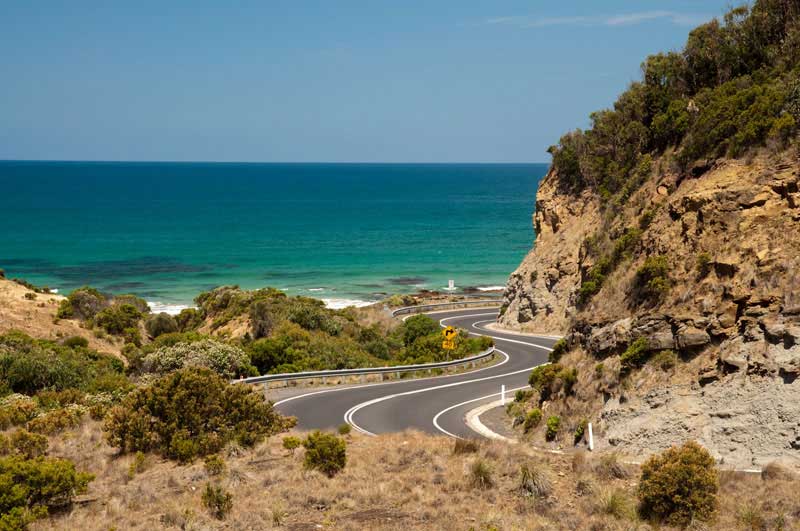 Recognised as one of the world s most scenic drives, the Great Ocean Road follows the stunning coastline of Victoria s south-west. Stretching from Torquay, just south of Geelong, to Allansford, east of Warrnambool, the road winds along cliff tops beside breathtaking headlands, down onto the edge of beaches, across river estuaries and through rainforests, offering ever-changing panoramic views of Bass Strait and the Southern Ocean.