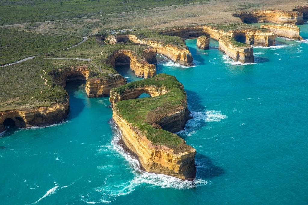 The Island Arch was one of a number of dramatic natural bridges here. A large section of the iconic rock formation succumbed to the elements and crumbled into the sea in 2009. As its name suggests, the impressive rock formation resembled an archway rising 25 metres from the sea. All that remains following the collapse are the two rocks that previously supported the arch.