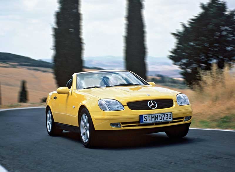 The other addition to the Mercedes range was the SLK - a two-seater sports car with a folding convertible-style steel roof and a supercharged 2.3 litre engine capable of 150mph. It is designed as a direct competitor to two new rival sports cars that had recently come from Germany - the Porsche Boxster and BMW Z3.