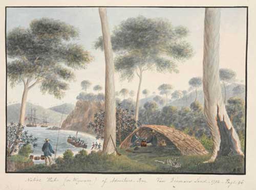 Naval lieut George Tobin's sketch of an aboriginal dwelling at Adventure Bay, drawn in 1792