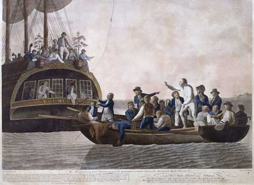 After serving on a number of ships, in June 1783 Bligh entered the service of Sir Duncan Campbell in the West Indian trade. He remained in the Jamaica trade for four years, his last assignment on board the Brittania, where he was to meet Fletcher Christian an others who were to sail with him on the Bounty. It was on this voyage, to collect breadfruit plants from Tahiti and take them to the west Indies, that Bligh was cut adrift in the ship's longboat by Christian in the inamous mutiny on the Bounty of 28 April 1789. Bligh's skills as a navigator of the highest quality was demonstrated by his ability to sail the Bounty's lifeboat, which was just 7 metres long, from the island of Torfoa to the island of Timor, a distance of 5,800 km, with only a sextant as a navigational aid.