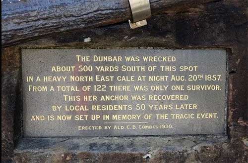 The Dunbar anchor used in The Gap memorial appears to have been one of two anchors reported to have been removed from the actual wreck site in 1910 by a local syndicate interested in preserving the memory of Dunbar. The group relocated the wreck site in 1907.