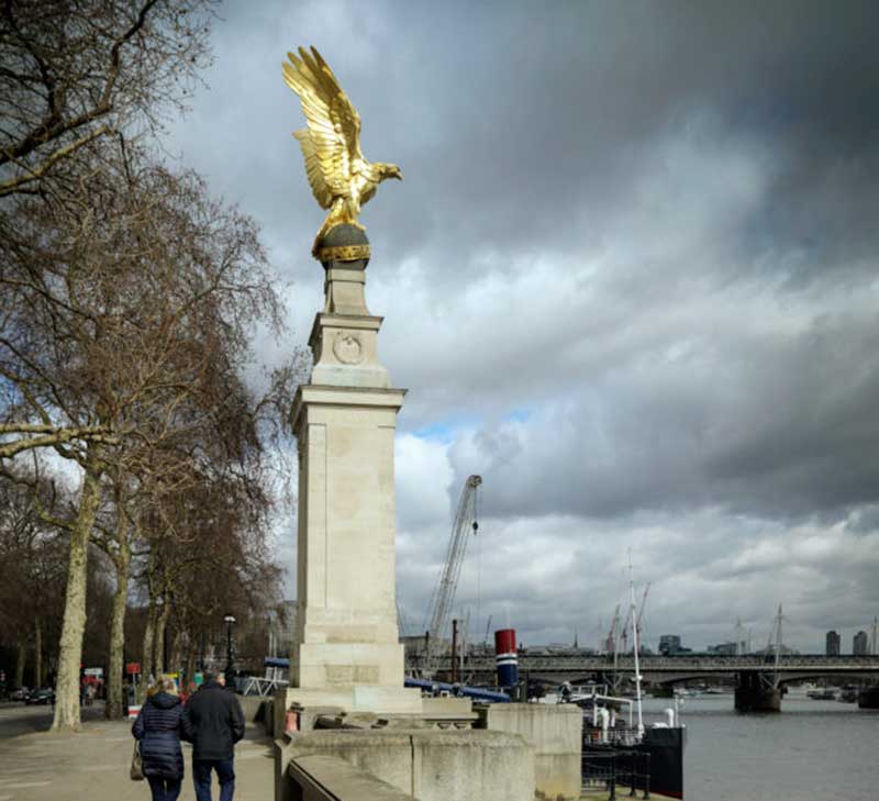 The Royal Air Force Memorial is a military memorial on the Victoria Embankment in central London, dedicated to the memory of the casualties of the Royal Air Force in World War I (and, by extension, all subsequent conflicts). Unveiled in 1923, it is considered to be the official memorial of the RAF and related services.