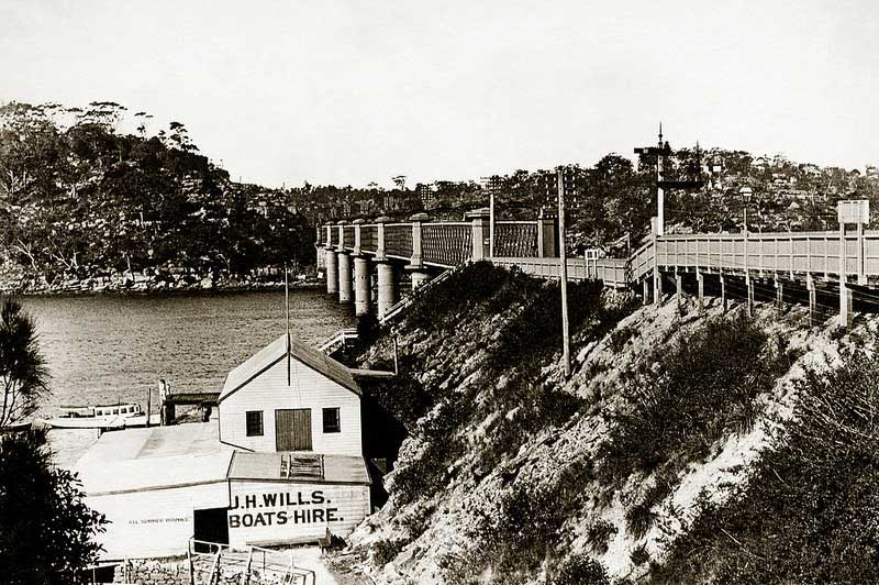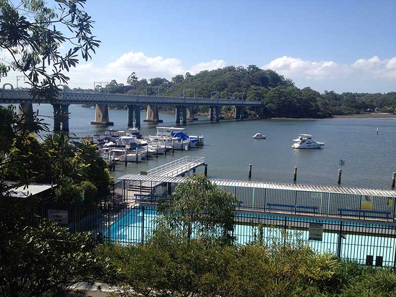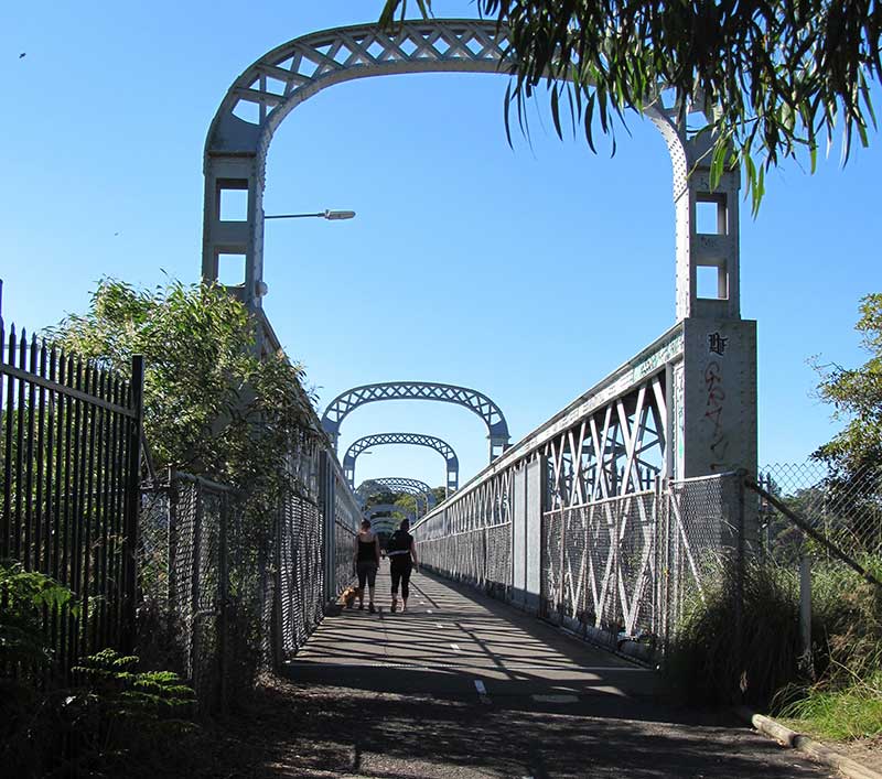 Como railway station was built just beyond the bridge alongside the Como Pleasure Grounds, a convenient location considering the popularity of Como as a picnic and holiday destination for city dwellers in the first half of the 20th century. When the new bridge was built, the station was moved some half a kilometre south. The disused station platform still exists and can be seen beyond the cyclone fencing where the line left the bridge.