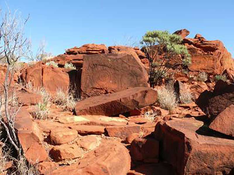 The site is close to the Ewaninga Conservation Reserve, a protected area consisting of an area of low sand dunes, rocky outcrops and a claypan. It is significant because of a large number of Aboriginal rock carvings. The conservation reserve contains many prehistoric abraded and pecked engravings that provide an outstanding example of central Australian rock art. The main feature of the area is a set of about 1000 petroglyphs, distributed among the rock outcrops to the south and south-east of the claypan. Most of the petroglyphs are non-representational, consisting of circles, lines and other geometric motifs, though there are some examples of animal tracks. The motifs have been compared with those found elsewhere in Central Australia and Tasmania. The conservation reserve is considered a significant link to the activities of the early Arrernte people of the region. Permission to access the site has been granted by the Arrente custodians.