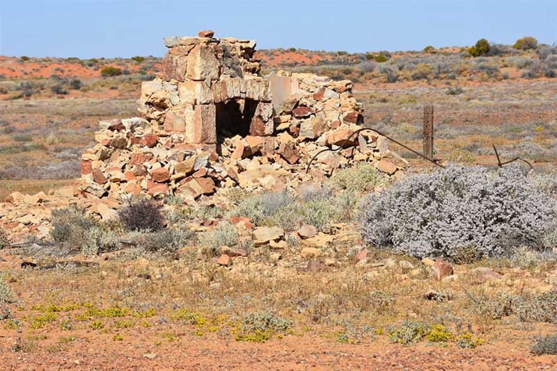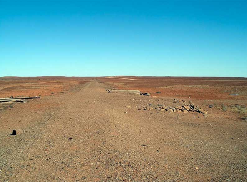 Wangianna Siding is located about 35km north of Marree. The old fettlers’ accommodation still stands and is in relatively good repair compared to other along the track. All other structures are, however, long gone. The remains of old sleepers, left behind when the track was lifted years ago, follow the line of the railway.