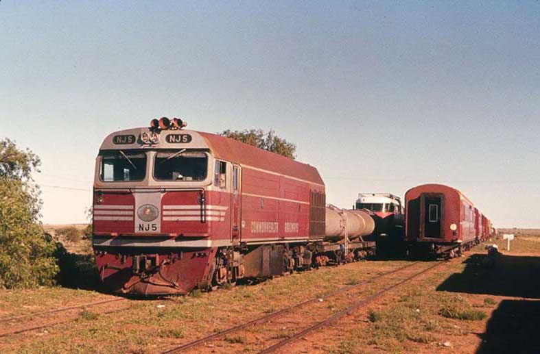 The NJ class are a class of diesel locomotive built in 1971 by Clyde Engineering, Granville for the Commonwealth Railways for use on the Central Australia Railway. In 1969, Commonwealth Railways ordered six single-cab NJ class locomotives from Clyde Engineering for use on the narrow gauge 1,067 mm (3 ft 6 in) Central Australian Railway between Marree and Alice Springs. They hauled freight trains as well as The Ghan passenger train. In July 1975, all were included in the transfer of Commonwealth Railways to Australian National. Following the closure of the Central Australian Railway in December 1980 and their unsuitability for conversion to standard gauge they were transferred by Australian National to the Eyre Peninsula Railway in South Australia.