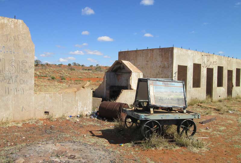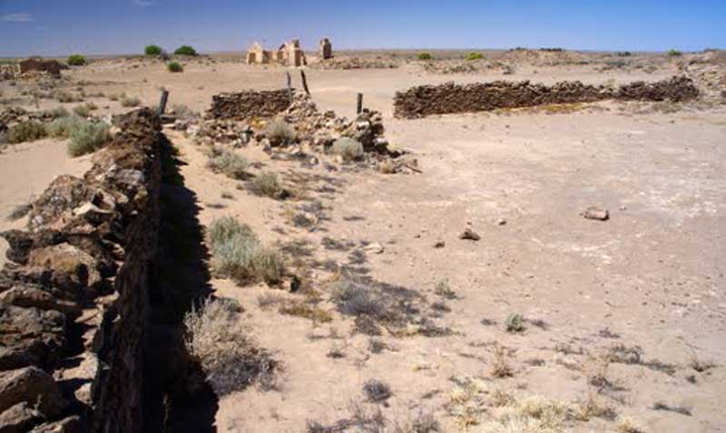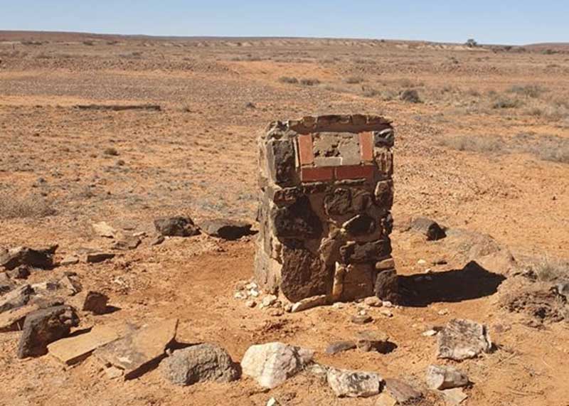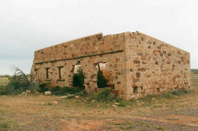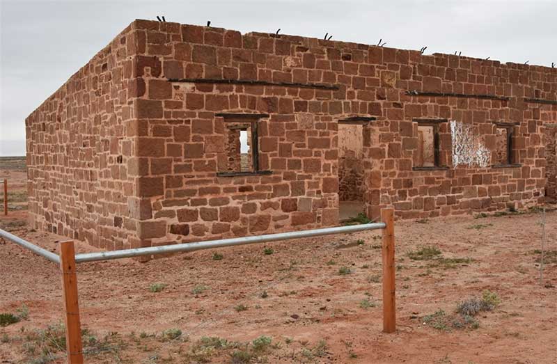 One of the more unusual cargoes embarked at Farina railway station was South Australia's biggest meteorite. The 1.2 tonne Murnpeowie iron Meteorite was dragged out of the desert north-east of here about a century ago; and can be seen today at the South Australian Museum in Adelaide. The town is no longer inhabited, with the closest residents now living at Farina station, visible to the west of the town. The last resident died in 1960. The post office closed in the 1960s. In its heyday, the town had two hotels (the Transcontinental and the Exchange), a bakery, grain store, two breweries, a general store, post office, Anglican church, five blacksmiths and a school. Today nothing but stone ruins and the elevated railway water tank remain of the township. A bush camping area is maintained by the owners of the present-day Farina station.