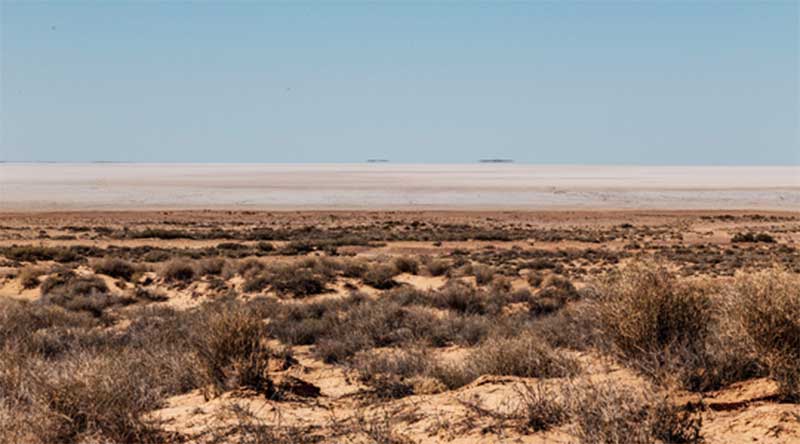 The line here is quite close to Lake Eyre South. There is a viewing point (with interpretive signs about geology, history, flora etc) about halfway between Marree and William Creek just past Fred Springs. Lake Eyre is probably the most famous feature along the Oodnadatta Track. The usually dry salt lake covers an area of 9700 km² and is up to 15m below sea level. You can't appreciate the dimensions of Lake Eyre from this viewing point, so it is best to take a scenic flight from Marree or William Creek. Warning! Don’t even think about driving out on the lake, even if it looks dry. Your car will break through the saline crust, and you will get bogged in the mud. When we stopped here, we could see 4WD tracks heading down to the edge but no tracks on the salt lake itself.