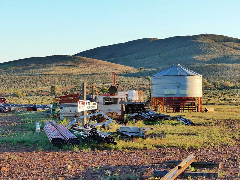 Callanna, just 14 km out of Marree, is the site of Bopeechee Siding, first of many relics of the Old Ghan railway line to come. A rusty water tower and pipe is all that is left. These railway sidings were the watering places for the steam locomotives of the old Ghan railway. Fettlers were built around these water supplies.