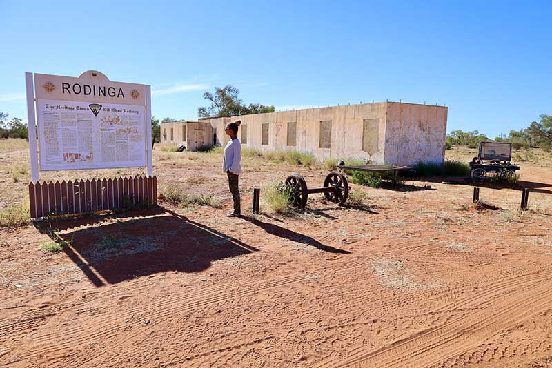 Rodinga Siding is about 140km north of Finke and 90 km south of Alice Springs. It is one of the original fettlers camps established during the construction of the Old Ghan Railway. The fettlers quarters consisting of nine rooms plus a kitchen are of the Ewaninga style of prefabricated concrete. It also provided a stop for the Old Ghan. Only the slab shell of the dining area remains.