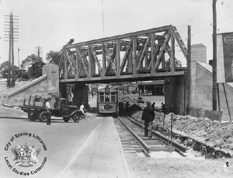 Mt Lawley subway, Perth, WA. Photo: City of Stirling Libraries Local Studies Collection. The subway was created utilising a combination of a railway embankment and the excavation of soil below the existing ground level.