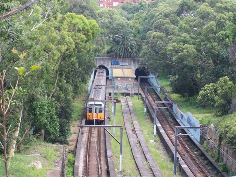 Opened in June 1979, the line passes through three tunnels. The Erskineville to Woolloomooloo tunnel, which goes under the city centre, is 1.45 km long. A tunnel between Edgecliff and Woollahra is 3.45 km long. A third tunnel, between Woollahra and Bondi Junction, has a length of 4.73 km.