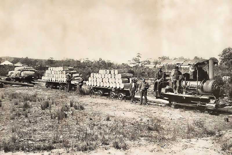 The first tram load of cheese, butter and wool to Smithton on the Marrawah tramway