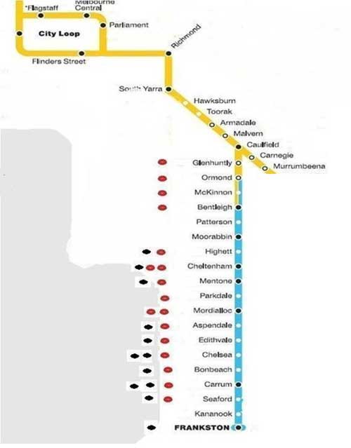 Sections of the Frankston line opened as early as 1881, with the line fully extended to Frankston in 1882. A limited number of stations were first opened, with infill stations progressively opened between 1881 and 2017. The line was built to connect Melbourne with the rural towns of Caulfield, Moorabbin, and Frankston, amongst others. Significant growth has occurred since opening, with a plan to extend the Frankston line along part of the Stony Point line to Baxter.
