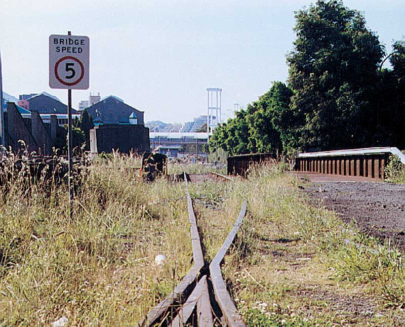 The Long Cove siding provided entry to and from the Australian Army Ordinance Stores located between the rail line and the Hawthorne Canal. In its heyday the double track Metropolitan Goods Line had up to forty train movements a day. The line was closed in January 1996, by which time it saw only weekly use to the Edwin Davey Flour Mill (adjacent to Metro Light Rail's Wentworth Park station).
