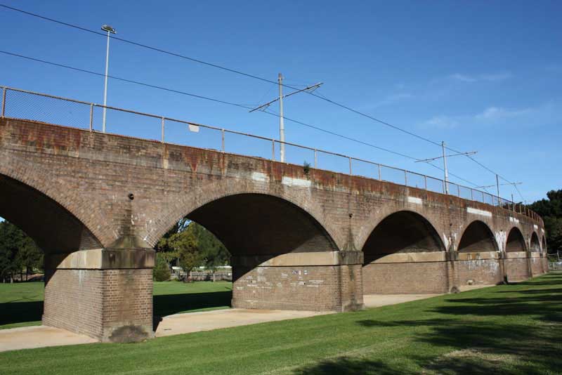 Between Darling Harbour and Rozelle, a series of bridges, viaducts and tunnels were constructed to carry the line through the suburban landscape. The construction of brick arch underbridges occurred in two periods: 1892 for the duplication of the line from Granville to Picton, then from 1914 to 1922 mostly for main line duplications. The former had bricks supplied from private brickworks whereas the latter's supply came from the State Brickworks at Homebush.