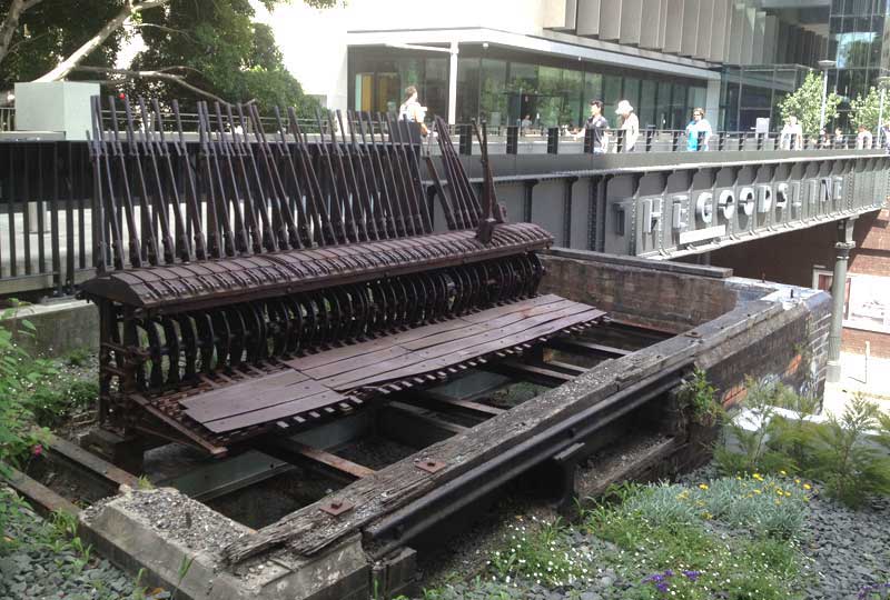 Above: a goods train passes over the Ultimo Street underbridge along what is now the Goods Line Precinct