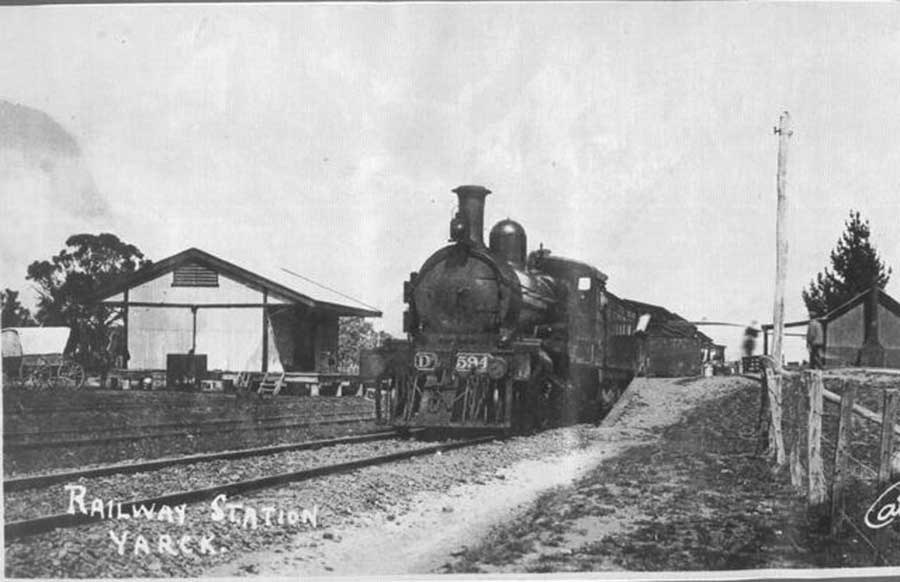 The main northeast line from Melbourne had reached Tallarook in November 1872. Ten years later, in 1882, a rail line was surveyed as far as Yea and the construction contract awarded. The route followed the curves and undulations of the valley, hugging the steep walls on the south side of the river. The terrain was not easy. In the first 11.2 kilometres to Trawool there were 17 curves and 68 changes of grade. At a cost of £97,637 pounds (around $20 million) and 23 bridges later, it took over 1,000 men to complete the railway line as far as Yea. The first train from Tallarook to Yea arrived on Tuesday 20th Nov 1883. Initially the return Tallarook to Yea train service was a daily Goods and Passenger train combined. The track speed was 60 km/hr.