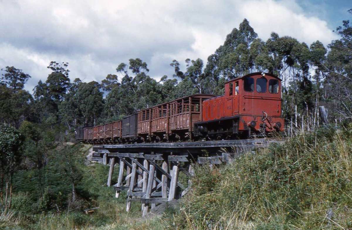 From 1882, the Tasmanian government constructed numerous branch lines including the Launceston-Scottsdale line as well as extending the Western Line along the North-West Coast. The Launceston-Scottsdale line branched off the Bell Bay railway line at Coldwater Creek Junction, 13km north of Launceston. It was opened in February 1889 and passed through twelve stations along the way, including Legerwood. Services opened to Scottsdale via Legerwood on 9th August 1889, it was extended to Branxholm in 1911, and to Herrick, about 46 kilometres north-east of the town of Scottsdale, on 15th March 1919. The distance by train from Launceston to Herrick was 124 km.