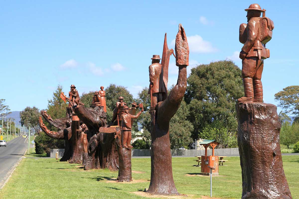 The small town of Legerwood near Ringarooma is worth a visit to see the town's war memorial - a series of chainsaw scuptures honouring the soldiers who fell in the Great War (1914-18). Spanning the rugged North-East from Launceston to St Helens, the The Trail of the Tin Dragon winds its way through stunning scenery and historic townships, including Legerwood. The Trail tells the little known story of tin mining in the North East of Tasmania, focusing on the European and Chinese miners who sought their fortune and risked all for this most remarkable metal.