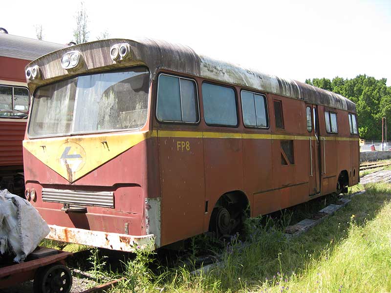 In 1937, the NSW Department of Railways added six Waddington-built four-wheel streamlined FP Paybuses to serve on small branch lines out Cowra and Harden that did not have enough passengers to justify a rail motor. Powered by a Ford V8 engine, they were given the designation FP1 to FP6. When the railbus service wasn't popular, several of the buses became mobile pay cars used to pay railway employees at stations and working on tracks. The first New South Wales railbus, FP1, has been restored where it is on display at the NSW Rail Museum in Thirlmere. Another seven were built by Comeng in the 1960s.