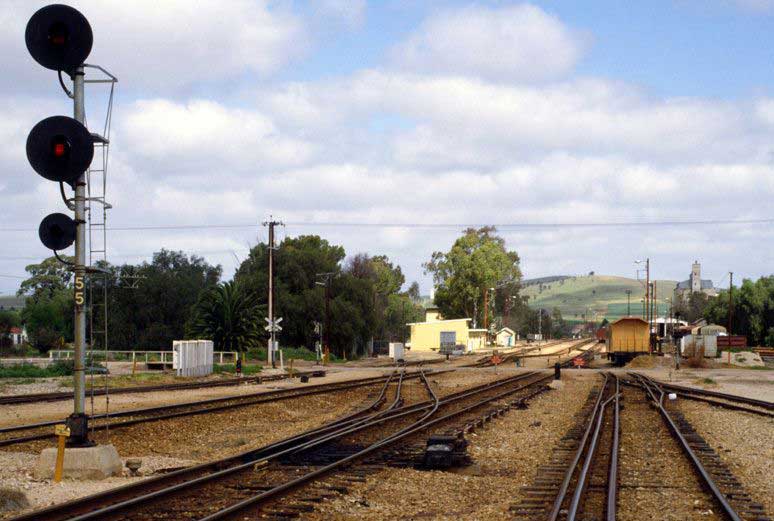 Gladstone, South Australia, was colloquially known as "Spaghetti Junction" with any and all trackwork combinations of the three gauges and associated pointwork in the station vicinity and a second triple gauge turntable. It was a platelayer's (track maintainer's) worst nightmare.