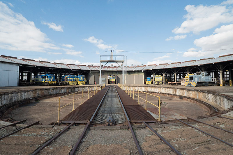 Where the station was either a terminus or entry point for a branch line, engine sheds to store and service locomotives were built, often with a manually operated turntable to change the direction of travel of a locomotive, as well as give locomotives and rolling stock access to storage and repair facilities. Where the railway yard functioned as a depot, engines were often stored or worked on in a roundhouse.