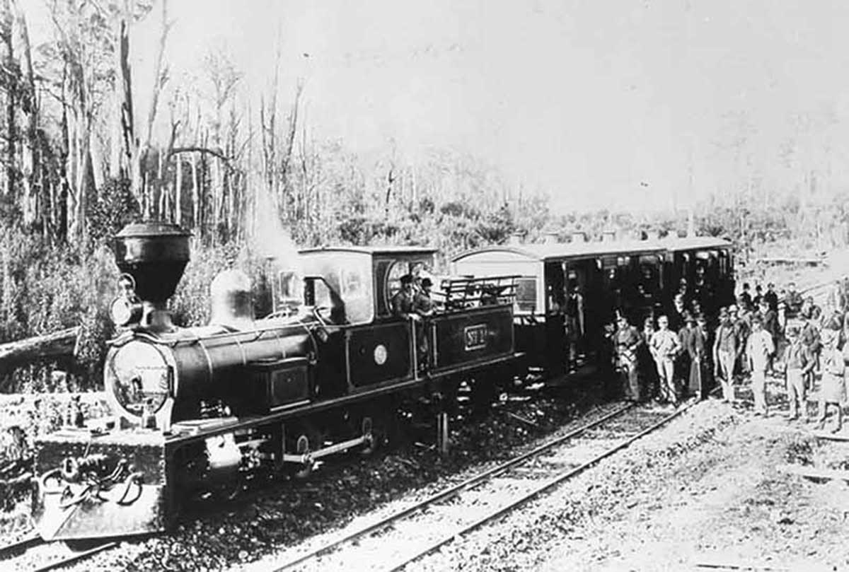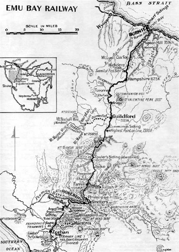 In the 1870s, the Van Diemen's Land Company engaged John C. Climie to undertake a survey of a line from near Burnie to Mount Bischoff. On 1 February 1878 a 71 kilometres (44 mi), horse drawn wooden tramway opened from Emu Bay (Burnie) to Rouse’s Camp, near Waratah to serve the Mount Bischoff tin mines. In 1887, the line was taken over by the Emu Bay to Mount Bischoff Railway Company and relaid with steel rails as 1,067 mm (3 ft 6 in) gauge railway line to allow steam locomotives to operate. In 1897 the Emu Bay Railway Company took over the line, extending it 60 kilometres to Zeehan on 21 December 1900.