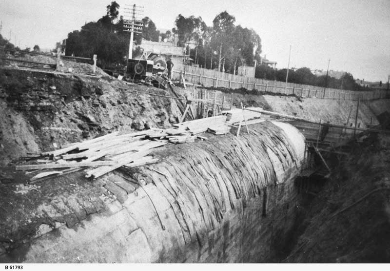 Murray Bridge railway tunnel under construction. Photo: State Library of South Austraia