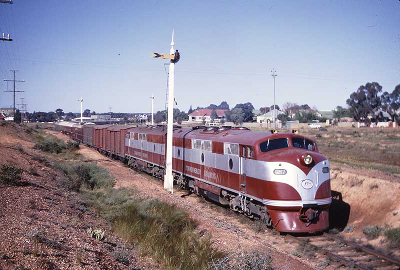 By the 1950s, moves were being made to extend the standard gauge line from Kalgoorlie to Perth. November 1962 saw the start of its construction, with the dual-gauge (achieved by using three rails) Avon Valley deviation being opened to Cape-gauge traffic on 14th February 1966, the day that Australia changed to decimal currency. This route replaced the winding and heavily graded route through the Darling Ranges via Glen Forrest and Mundaring, east of Perth. Grain traffic from Merredin commenced in that November, and ore from Koolyanobbing to Kwinana started rolling on the following April. The full standard gauge railway from Kalgoorlie to Forestfield, Kewdale, Kwinana and Fremantle (Leighton) was finally opened to revenue service for freight traffic in November 1968, and to passenger traffic, both local and the trans Australian railway, into new East Perth Terminal, in February 1970.