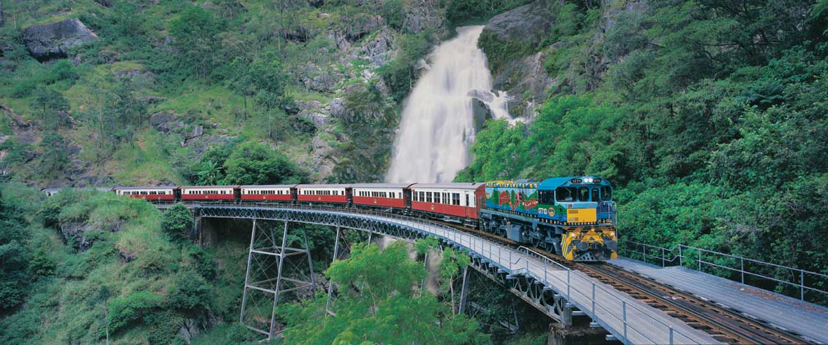 A trip up to Kuranda in the Cairns Highlands on the Kuranda Scenic Railway is a "must do" experience if you are visiting Queensland's north. Once a working railway, these days it is essentially for tourists, and a great way to travel to Queensland's famous village in the rainforest; the train passing through some gorgeous mountainous tropical country with spectacular waterfalls and panoramic coastal vistas.