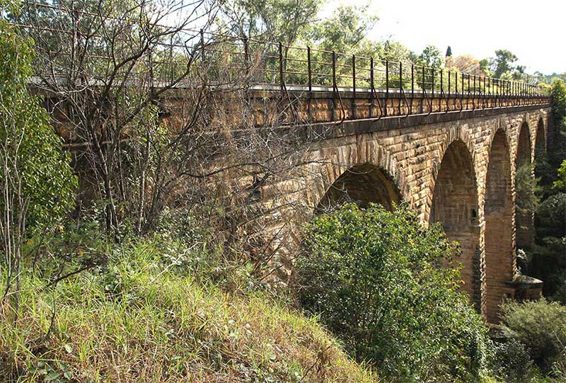 The Stonequarry Creek railway viaduct was built for the Picton to Goulburn railway extension, 1862-1869. John Whitton had been denied funds to continue with the expensive wrought iron girder bridges, so he then chose the stone arch viaduct for his major bridge works. The former at Menangle cost £94,562 whereas the Stonequarry Creek viaduct cost £10,437. It has proved to be a most cost-effective structure.