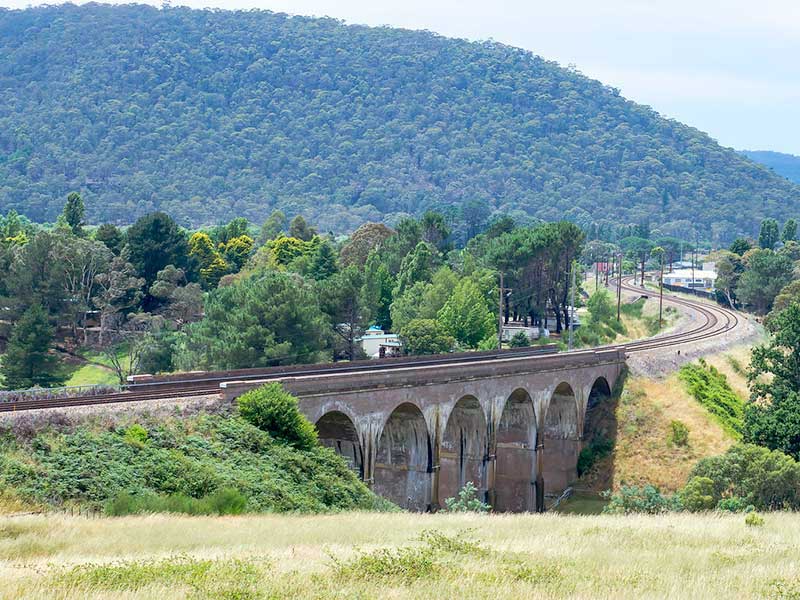 The picturesque Bowenfels rail viaducts are a series of heritage-listed railway viaducts and railway bridges over Farmers Creek on the Main Western line in Bowenfels, City of Lithgow, New South Wales. It was designed in two stages - by John Whitton as the Engineer-in-Chief for Railways, in 1870; and by engineering staff of New South Wales Government Railways in 1921; and was built from 1870 to 1921. It is also known as Farmers Creek viaducts. The property is owned by RailCorp, an agency of the Government of New South Wales. It was added to the New South Wales State Heritage Register on 2 April 1999. The viaduct are located approximately 159 kilometres west of Central railway station.