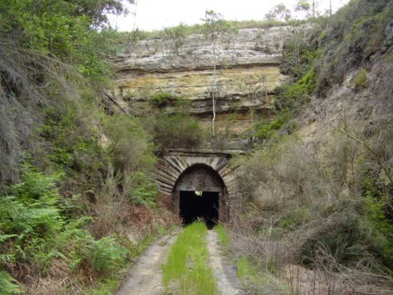 Opened 1st March 1870, the original Marrangaroo Railway Tunnel was a 244 metre single-track tunnel. The line and the tell into disuse when the track was deviated in 1923. The line ans tunnel were closed on 28th October 1923. Access is not possible as the tunnel lies on private property. There was a survey undertaken for a deviation of the tunnels around 1913 which involved the building of another tunnel to the left of Tunnel No.3. However nothing became of those plans and it was not until 1923 when the Bowenfels to Wallerawang section of the Great Western Railway was duplicated and the new route under the Marrangaroo Range was completed.