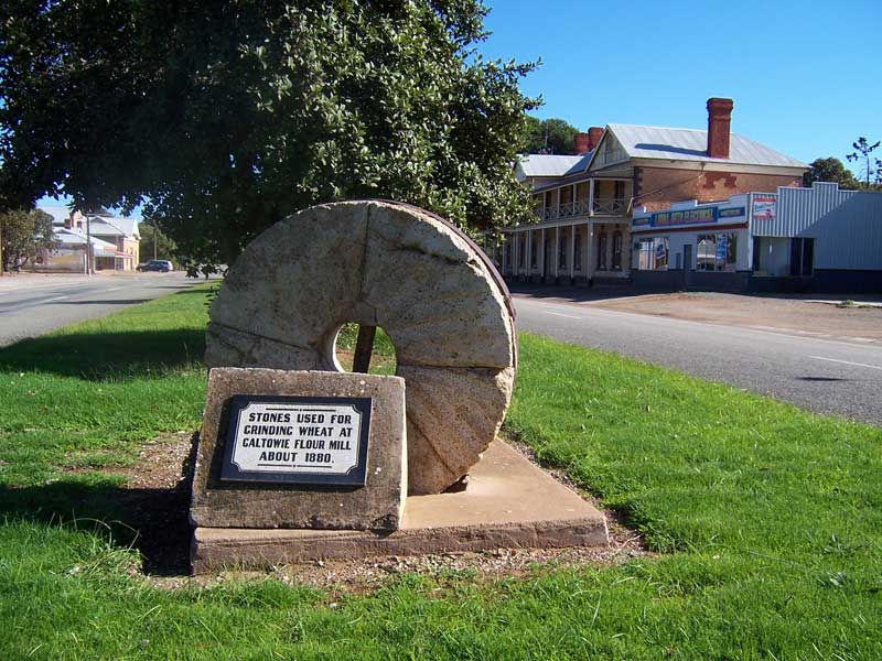 Dominating the township are the huge concrete wheat silos. A couple of grindling wheels dating from the 1880s from the town's former mill adorn the median strip of the main street. The historic Caltowie Hotel has a reputation for good food and comfortable accommodation. It is the hub of the small but close-knit community; close by is a childrens playground and bowling club. In 1970 Caltowie had a brief moment in the spotlight when the inaugural Indian Pacific train crossed here, a quirk of fate because one was running late.